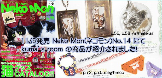 猫アクセサリー・猫グッズ・猫雑貨 ::kuma's room:: 裏方スタッフ&黒猫のブログです。